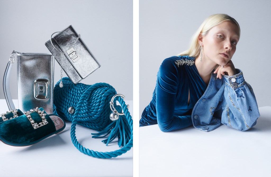 Millennial silver can extend beyond jewellery. With this in mind, go for silver metallics by way of your accessories. There’s a lot of velvet making headway this season so consider this when you’re thinking about your accessories. Seen here in evergreen by Bottega Venetta and Roger Vivier.
